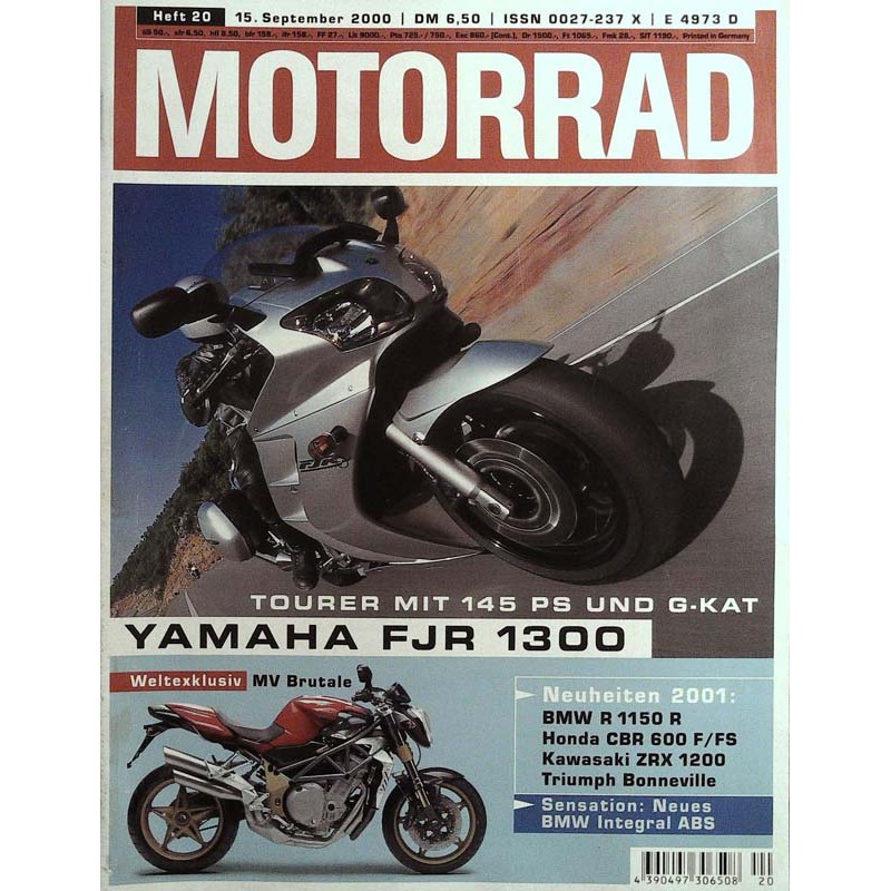 Original Inhaltsbeschreibung der Zeitschrift Motorrad Nr.20 / 15 September 2000 - Yamaha FJR 1300: