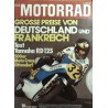 Inhalt: Briefe an uns Autohändler wieder interessiert Aktuelles Eklat auf dem Nürburgring Sportergebnisse MC-Jupo-Kampf in Tennenlohe DMV-Zweitagefahrt in Neunkirchen Porsche-Achtel DAS MOTORRAD fuhr Yamaha RD 125 Sportnotizen Kawa von innen (Schluß) Neues vom Roth-Sandbahnmotor Bücher Noch lebt der Viertakter Internationales Moto Cross in Gaildorf: Gelungener Auftakt Fachbegriffe Großer Preis von Frankreich In memoriam: George William Patchett Neue Versicherungstarife Rokon-Trailbreaker Harley-Treffen Auftakt zur Trial-Meisterschaft Vorschau