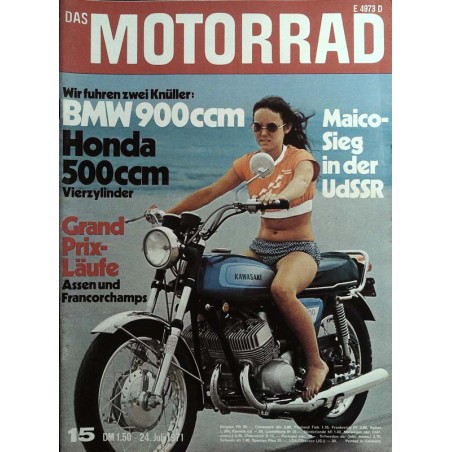 Inhalt: Briefe an uns Eigentor, Herr Pastor Dutch TT — Assen BMW-Geheimnis" R 90/5 5. Lauf zur Straßenweltmeisterschaft Francorchamps DAS MOTORRAD fuhr die Vierzylinder Honda CB 500 "Aufbohren" kinderleicht? Motorrad-Vergaser (2) Maico Triumph in Kishinev Staub überm Schwäbischen Wald: Rudersberg DAS MOTORRAD-Schaufensterbummel Moto Cross Rodheim-Bieber 50 Jahre AVUS Die Schweizer Fahrer bei der TT Trial Oberdießbach Triel Bassecourt Das Letzte