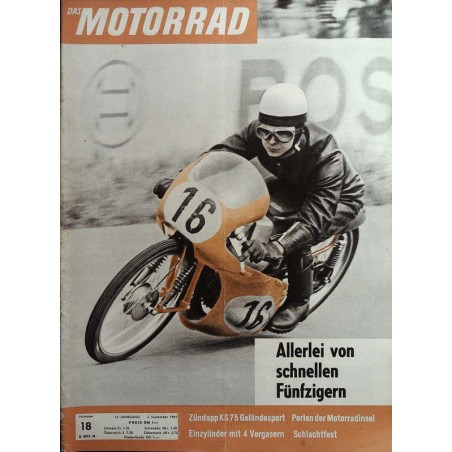 Inhalt: Versäumnisse Zweitakter auf der Werkbank (2) Das MOTORRAD fuhr: Zündapp KS 75 Geländesport Kreidlers Erfolg in Zandvoort 8. Weltmeisterschaftslauf, Ulster Grand Prix Um den OMK-Junioren-Pokal: Flugplatzrennen Neubiberg Perlen der Motorradinsel Schnelle 50er in Frankreich Ferieneinsamkeit im Nordschwarzwald Einzylinder mit 4 Vergasern? Samstags wird geschlachtet Norwegens Motorrad-Situation Gegen das „Nachschlagen": Ein neuer Drehgriff Transportanhänger zulassungsfrei Das nützliche Ölthermometer Reden wir vom Sport Briefe an uns Das MOTORRAD baut am Motor: AJS 350 ccm-Einzylinder (IX) Ganz unter uns