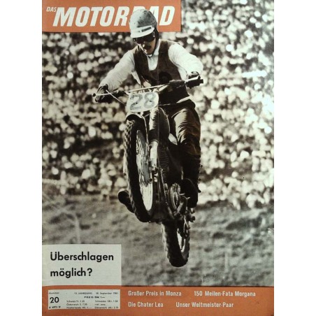 Inhalt: Weltmeisterschaftslauf in Monza. Großer Preis der Nationen Laß es dir ruhig sagenl (Fahrschul-Bandwurm — ganz von vorn)(2) 150 Meilen Fata Morgana (Es war Wirklichkeit!) (Lady) Chater Lea Dougal Merchant, Meisterstück Etwas schaurige, aber notwendige Theorie im Kampf gegen Grubenbunde und Aberglauben Kann sich ein Motorrad überschlagen?? Technische Moto Cross-Auslese von Immenstadt Unsere Weltmeister Zweitakter auf der Werkbank (4) Gewußt wo Briefe an uns Fast 40 Jahre im Betrieb Eine BMW von 1921 Reden wir vom Sport Das MOTORRAD baut am Motor: AJS 350 ccm Einzylinder (XI) Ganz unter uns