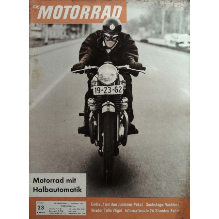 Inhalt: Die Schuld des anderen Der große Tag der Junioren: Nationales Bergrennen am Schauinsland, Freiburg Sechstage-Nachlese Die Gläserschen Vollschiffe Laß es dir ruhig sagen! (Fahrschul-Bandwurm — ganz von vorn (5) Tolle Vöge Fachausdrücke und Grundbegriffe Kolbengeschwindigkeit Ein seltener Vogel: BSA mit Halbautomatik Internationale 24-Stunden-Fahrt, Avus Zweitakter auf der Werkbank (5) Briefe an uns Insel am Rande Europas: Irland Wider Grubenhunde und Aberglauben, 2. Teil: Ein Motorrad könnte sich doch überschlagen Reden wir vom Sport Gewußt wo Das MOTORRAD baut am Motor; AJS 350 ccm Einzylinder (XIII) Ganz unter uns