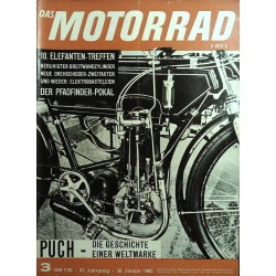 Inhalt: Ein interessanter Versuch in Österreich: Motorsport - Parlament Die 10. Schlacht Elefantentreffen 1965 Puch — die Geschichte einer Weltmarke Drachen-Rallye 65 Der „Continental Contact Officer WO? Die Trophäe der großen Motorrad-Pfadfinder 1965 Kein Messen, kein Wissen (II) Neue Drehschieber-Zweitakter aus Italien Der beruhigte Breitwand-Zylinder Grundschule der Motorradtechnik (II) Warum wir mehr bezahlen müssen Reden wir vom Sport Ganz unter uns