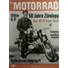 Rücktitel: Wenn ein Motorradwerk auf 50 Jahre seines Bestehens zurückblicken kann, dann ist das nicht zuletzt dem Einsatz vieler einzelner zu danken, die mit ihrer schöpferischen Kraft und ihrer Hände Arbeit den Markenbegriff schufen. Nur die wenigsten von ihnen kennt man draußen — für sie alle steht hier in unserem Bild Schorsch Weiss, heute Zündapp-Kundendienst- und Sportabteilungsleiter in einer Person, damals noch selbst aktiver, immer wieder erfolgreicher Fahrer auf Zündapp-Maschinen.