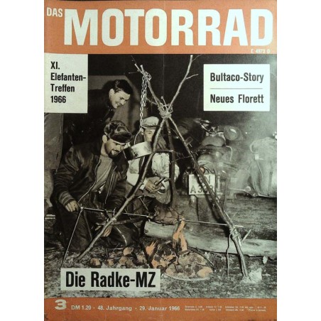 Inhalt: Die große Gefahr XI. Elefanten-Treffen RMZ = Radke MZ Lüneburger Heide CZ-Geländemaschinen käuflich Die Bultaco-Story Kreidler Florett 1965 und 1966 Rückwärtsgang für KS-Getriebe Gefährliche Pendelei Grundschule der Motorradtechnik (26) Erstaunliche Wirkung Trial in der Sackgasse? Gewußt wo Ganz unter uns