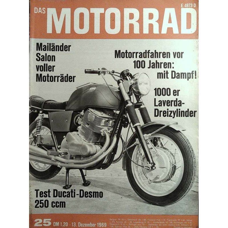 Inhalt: Wer schneidet den Zopf ab? Mailänder Salon — voller Motorräder DAS MOTORRAD fuhr: 250 ccm Ducati Desmo Kasan 1969 Vor 100 Jahren begann's mit Dampf Ein neuer Dreizylinder aus Italien: Laverda 1000 Eine Motoren-Sensation von 1912 Neuheiten-Test: UHU-plus 5 minuten Motorradreisen im Walfischbauch (Schluß) Trial in St Cucufa Wann lohnt sich eine Nickel-Cadmium-Batterie Aus der Praxis des Zweitaktmotors (2) Modelle-Max Deubels BMW-Gespann Das Letzte