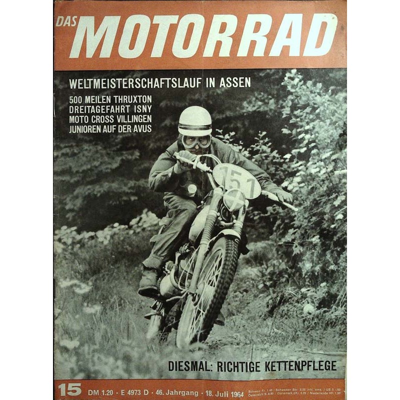 PLUS: Weltmeisterschaftslauf in Assen - 500 Meilen Thruxton - Dreitagefahrt Isny - Moto Cross Villingen - Junioren auf der Avus - Diesmal: Richtige Kettenpflege