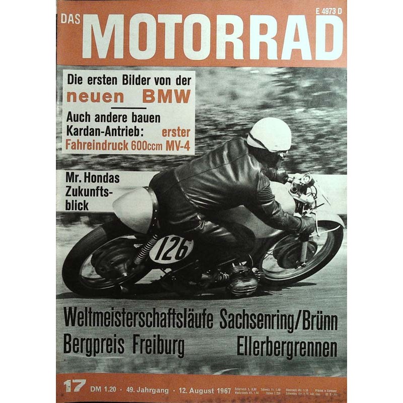 PLUS: Weltmeisterschaftsläufe Sachsenring/Brünn - Bergpreis Freiburg - Die ersten Bilder von der neuen BMW - Auch andere bauen Kardan Antrieb: Erster Fahreindruck 600 ccm MV-4 - Mr. Hondas Zkunftsblick