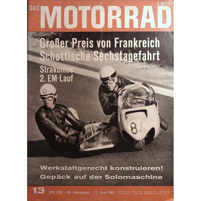 Inhalt: Werkstattgerecht konstruieren Das klassische Trial wurde eine Beute von Sammy Miller Schottische Sixdays Zwanzig waren aus Zschopau 2. Lauf zur Straßenweltmeisterschaft Großer Preis von Frankreich Fahren, reisen oder ,transportieren? Bielsteiner Waldkurs Viel Steine geb's — und manche Enttäuschung: Strakonice Fichtelgebirgs-Zuverlässigkeitsfahrt Veteranenrallye Ulfenbachtal DAS MOTORRAD baut am Motor: Yamaha YDS 3 (4) Neuheiten-Test Die neue Kurve Das richtige Einstellen(4) Motogiro d'ltalia Das Letzte