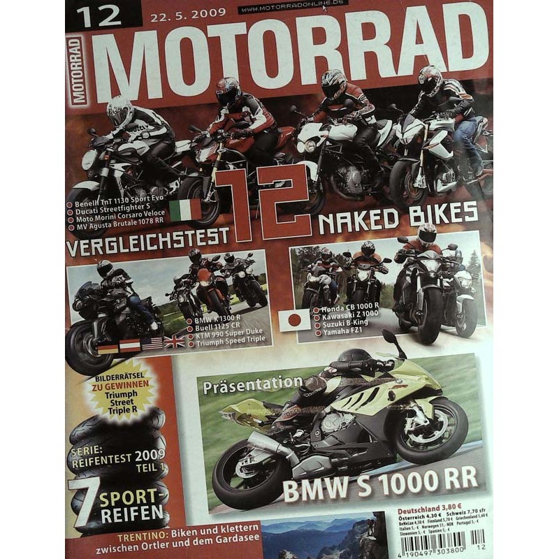PLUS: Vegleichstest: 12 Naked Bikes wie Benelli TnT 1130 Sport Evo, Ducati Streetfighter 5 uvm. - Seire: Reifentest 2009 Teil 1 7 Sport Reifen - Trentino: Biken und klettern zwischen Ortler und dem Gardasee