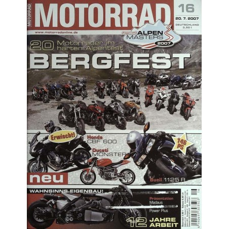 Test + Technik Neuheiten Erlkönig Honda CBF 600, Buell 1125 R, Harley-Davidson-Mcdelle, Ducati Monster Fahrbericht Madaus Twintrax Power Plus Ein völlig abgedrehtes Unikat mit zwei Harley-Motoren Alpen-Masters 2007 Teil 1: die ersten drei Kategorien — Allrounder, Sportler und Big Bikes. Welche drei der insgesamt zwölf Maschinen schaffen es ins Finale? Technik: Euro 3 und Fahrzeuggewicht So manches 2007er-Modell hat deutlich an Gewicht zugelegt. Als Grund wird gern die neue Schadstoffnorm genannt. Liegt's tatsächlich daran Impression JvB-Ducati Scrambler Redakteur Rolf Henniges fuhr einen Umbau auf Basis der Multistrede Test compact Fahrbericht Honda Shadow Spirit, neue Crosser von Kawasaki und Yamaha; Zusatztanks für BMW HP2, Dauertest-Übersicht Fahrbericht Victory Vision Mächtiger Luxustourer im typischen US-Style