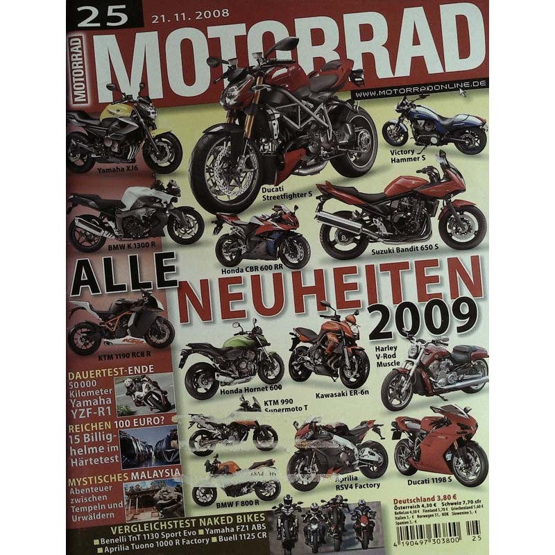 Original Inhaltsbeschreibung: der Zeitschrift: Das Motorrad Nr.25 / 21 November 2008 - Alle Neuheiten