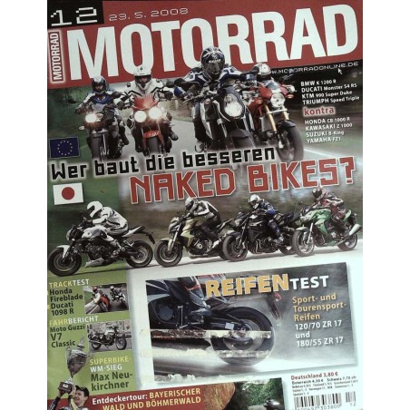PLUS: Tracktest: Honda Fireblade Ducati 1098 R - Fahrbericht: Moto Guzzi V7 Classic - Superbike: WM-Sieg Max Neukirchner - Entdeckertour: Bayerischer Wald und Böhmerwald - Reifentest: Sport und Tourensport Reifen 120/70 ZR 17 und 180/55 ZR 17