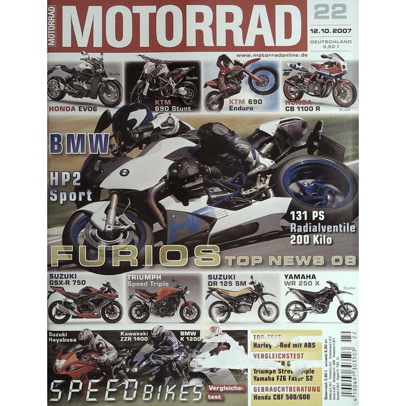 Test + Technik Concept-Bikes Einzigartige Studien von Honda, KTM und Yamaha Neuheiten BMW HP2 Sport; Suzuki GSX-R 750, DR 125 SM: KTM 690 Duke/Enduro/SMC/SMR; Triumph Speed Triple, Speedmaster; Ducati Hypermotard 1100 und Monster S4 RS Vergleichstest Speedbikes Die stärksten Serienmaschinen: BMW K 1200 S, Kawasaki ZZR 1400 und Suzuki Hayabusa Top-Test Harley-Davidson V-Rod Mehr Hubraum, mehr Druck. Und ABS Test compact Fahrbericht Klein-FZ1; Leseraufruf Kawasaki ER-6f Leserwahl: die größten Flops Dauertest Hyosung GT 125 R 12500 Kilometer mit dem Nachwuchs-Sportler Fahrbericht Aprilia NA 850 Mana Automatikmotorrad mit Rollertechnik Vergleichstest Mittelklasse-Bikes Suzuki GSR 600, Triumph Street Triple 675, Yamaha FZ6 Fazer S2 MOTORRAD-Bestenliste