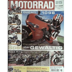 Test + Technik Nachlese Messe Mailand Was die kleineren Marken zu bieten hatten Fahrbericht Ducati 1098 Die Stunde der Wahrheit erster Kontakt mit dem neuen V2-Supersportler Fahrbericht Honda CBR 600 RR Leichter, stärker, besser? Die neue Doppel-R auf der Rennstrecke Vergleichstest Enduros/Funbikes Die neue Kawasaki Versys gegen Honda Transalp 650 Travel und Suzuki V-Strom 650 Top-Test Triumph Tiger Test compact Fahrbericht Buell XB12Scg: Dauertest-News Dirt Track Der Harley-Davidson-Prototyp XR 1200 und sein Vorbild, der legendäre Flat-Track-Racer XR 750
