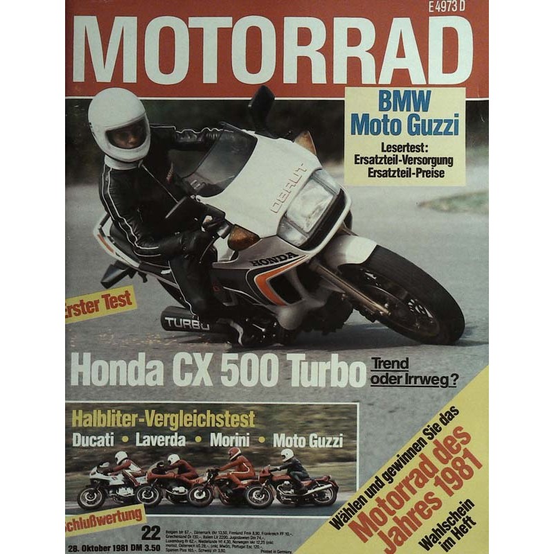 TECHNIK UND TEST Vergleichstest italienischer Halbliter-Maschinen Schlußwertung Viererbande TÜV-Abnahme Kreidler Chopper Reifeprüfung MOTORRAD intern Action und Aktionen Test Malaguti Cavalcone Kontraste Pariser Salon 1981 French Collection Fahrbericht MF 650 R Ring frei Vorstellung Morini 500 Turbo Spätzünder Nachrichten