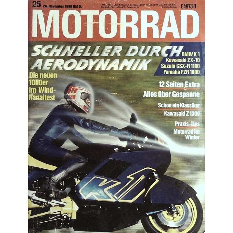Original Inhaltsbeschreibung der Zeitschrift Motorrad Nr.25 / 26 November 1988 - Aerodynamik: