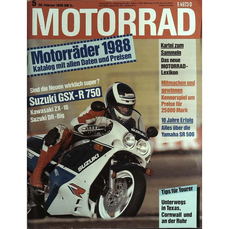 PLUS: Motorräder 1988: Katalog mit allen Daten und Preisen - Kartei zum Sammlen: Das neue Motorrad Lexikon - 10 Jahre Erfolg: Alles über die Yamaha SR 500 - Tips für Tourer: Unterwegs in Texas, Cornwall und an der Ruhr