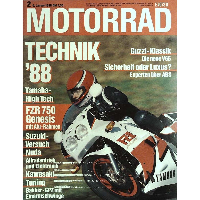 Original Inhaltsbeschreibung der Zeitschrift Motorrad Nr.2 / 9 Januar 1988 - FZR 750 Genesis: