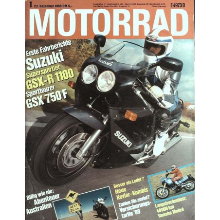 Original Inhaltsbeschreibung der Zeitschrift Motorrad Nr.1 / 23 Dezember 1988 - Suzuki GSX-R 1100: