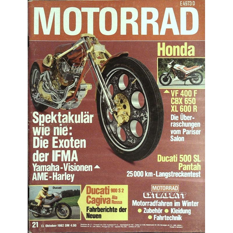 PLUS: Honda VF 400 F, CBX 650, XL 600 R, die Überraschungen vom Pariser Salon - Ducati 500 SL Pantah: 25000 km-Langstreckentest - Ducati 900 S 2, Cagiva Ala Rossa: Fahrberichte der Neuen - Motorrad Extrablatt: Motorradfahren im Winter, Zubehör, Kleidung, Fahrtechnik