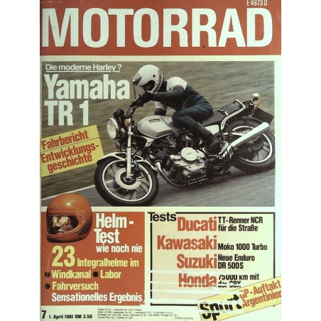 PLUS: Tests: Ducati TT-Renner NCR für die Straße, Kawasaki Moko 1000 Turbo, Suzuki neue Enduro DR 500S, Honda 75000 km mit der CBX - Sport: GP-Auftakt Argentinien - Helm Test wie noch nie: 23 Integralhelme im Windkanal, Labor, Fahrversuch und sensationelles Ergebnis