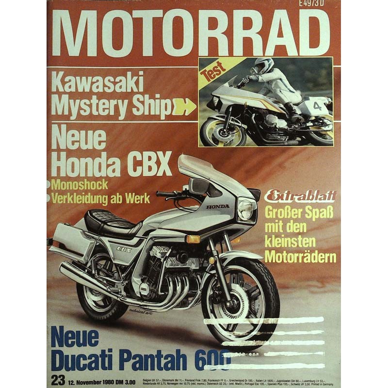 TECHNIK UND TEST Test Kawasaki Mystery Ship Traumschiff Nachrichten 25 000 Kilometer-Test Kawasaki Z 1000 ST Immer Ärger mit der Elektrik Test Moto Guzzi T 4 T wie Tourer Zündapp-Leichtkrafträder auf Probefahrt Die Zukunft hat begonnen Fahrbericht Ducati Pantah 600 Starker Pantah Anti-dive-System von Suzuki Stützungsmaßnahme
