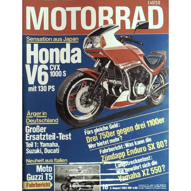Original Inhaltsbeschreibung der Zeitschrift Motorrad Nr.16 / 3 August 1983 - Honda V6 CVX 1000 S: