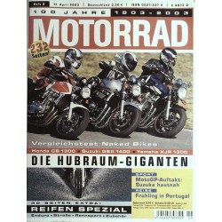 Original Inhaltsbeschreibung der Zeitschrift Motorrad Nr.9 / 11 April 2003 - Vergleichstest Naked Bikes: