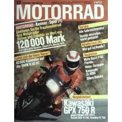 TEST & TECHNIK Jeaniel-Yamaha-vmax-Gespann: Fahrbericht Heiß 40 000 Kilometer mit der BMW R 80 RT Touristenklasse MOTORRAD-Händlertest Tell 3: Honda Fangfrage Kawasaki ZL 1000: Fahrbericht Brahms Tierleben Gilera Dakota 350: Fahrbericht Heimkehrer Moto Guzzi V 65 Florida: Test Italiener sind anders