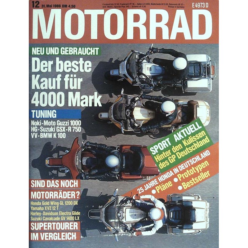 PLUS: Tuning: Noki-Moto Guzzi 1000, HG-Suzuki GSX-R 750, VV-BMW K 100 - Sind das noch Motorräder? Honda Gold Wing GL 1200 DX, Yamaha XVZ 12 T, Harley Davidson Electra Glide, Suzuki Cavalcade GV 1400 LX - Supertourer im Vergleich - Sport aktuell: Hinter den Kulissen des GP Deutschland - 25 Jahre Honda in Deutschland: Pläne, Prototypen, Bestseller