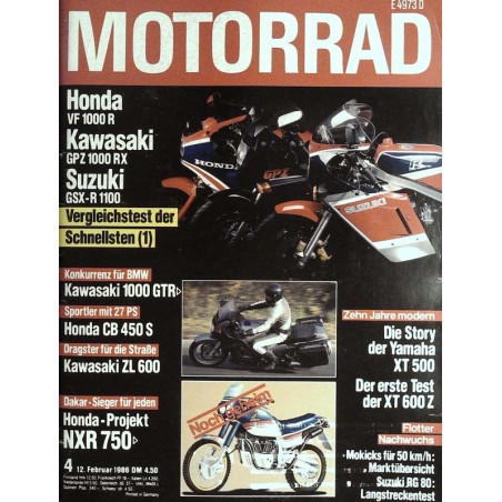 PLUS: Konkurrenz für BMW: Kawasaki 1000 GTR - Sportler mit 27 PS: Honda CB 450 S - Dragster für die Straße: Kawasakli ZL 600 - Dakar Sieger für jeden: Honda Projekt NXR 750 - Zehn Jahre modern: Die Story der Yamaha XT 500, er erste Test der XT 600 Z - Flotter NAchwuchs: Mikicks für 50 km/h, Marktübersicht, Suzuki RG 80 Langstreckentest
