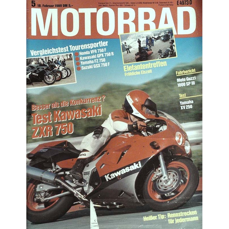 PLUS: Vergleichstest Tourensportler: Honda VFR 750 F, Kawasaki GPX 750 R, Yamaha FZ 750, Suzuki GSX 750 F - Elefantentreffen: Fröhliche Eiszeit - Fahrbericht: Moto Guzzi 1000 SP 3 - Test: Yamaha XV 250 - Heißer Tip: Rennstrecken für jedermann