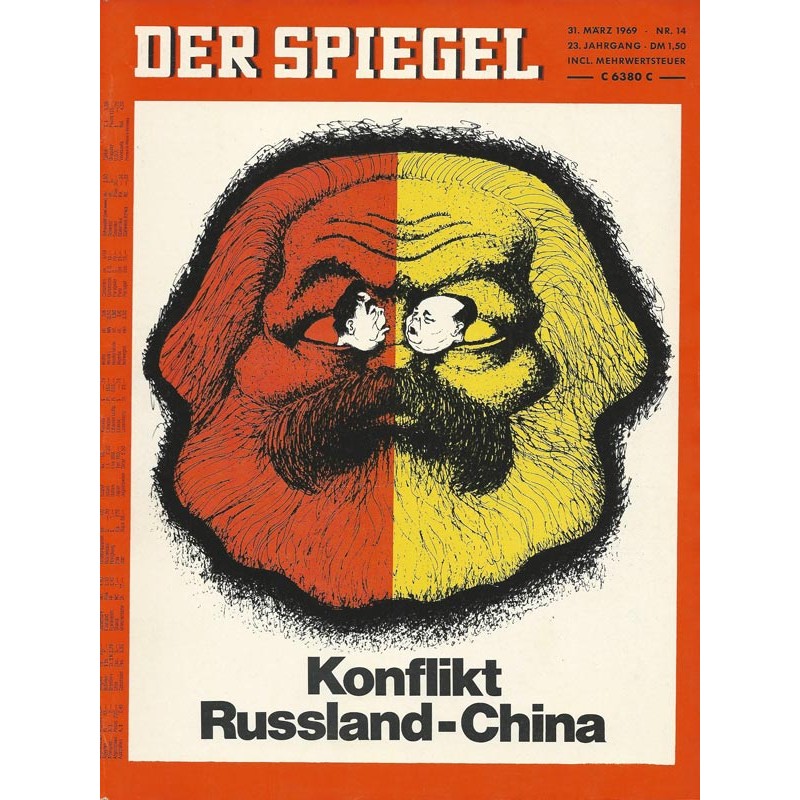 Moskau sieht Mongolensturm: Als eine "Bande wilder sozial-faschistischer Briganten" erscheinen die Russen heute den Chinesen. Moskau geißelt dafür die "rasenden kannibalistischen Ideen Maos": Seit den Schüssen am Ussuri ist der Wortkrieg der roten Giganten kaum noch zu steigern, ist der Glaubenskrieg zum Grenzkrieg geworden. Die Russen scheinen die Aggressiveren, die Chinesen die Vorsichtigeren zu sein. "Mit überhaupt nichts", drohte Moskau, könne sich China gegen russische Raketen schützen