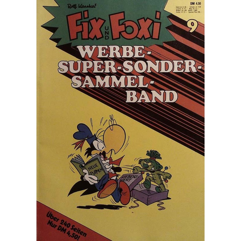 Folgende Fix und Foxi Sammelbände mit folgenden Texten sind in diesem Werbe Super Sonder Sammelband 9 enthalten, die wiederum jeweils 3 Ausgaben von Fix und Foxi Einzelhefte enthalten