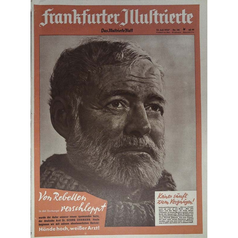 Titelbild: Keiner säuft zum Vergnügen! behauptet Hemingway - aber er schreibt auch ab und zu ein Buch. Der alte Mann und das Meer ist eines seiner schönsten. In seinen Büchern spielen echte Kerls die Hauptrolle. Diese Echtheit hat der Meisterfotograf Karsh auch in Hemingways Porträt gebannt. Von drei Filmen, die jetzt nach seinen Romanen gedreht werden, und was man sonst von Hemingway erzählt, berichten wir in diesem Heft.