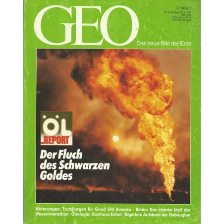Öl-Report: Der Fluch des Schwarzen Goldes - Wie der Junkie an der Nadel hängen die Industrieländer am Erdöl. Um an immer mehr Stoff heranzukommen, dringer Ölschürfer in die entlegesten Regionen der Erde vor, scheuen weder Mühsal noch technischen Aufwand. Der Preis ist hoch: immense Umweltschäden zu Lande, zu Wasser und besonders in der Luft Gigatonnen Verbrennungsgase bedrohen das globale Klima. GEO nimmt die brennenden Ölquellen von Kuweit, diese katastrophale Hinterlassenschaft des Golfkriegs, zum Anlaß, den Weg des Erdöls von der Prospektion bis zur folgenreichen Verwendung der Petro-Produkte darzustellen.