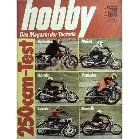 Original Inhaltsbeschreibung der Zeitschrift Hobby Nr.25 / 4 Dezember 1974 - 250ccm Test: