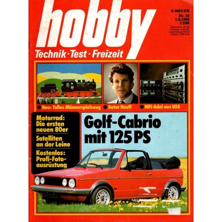 Original Inhaltsbeschreibung der Zeitschrift Hobby Nr.18 / 1 September 1980 - Golf Cabrio mit 125 PS:
