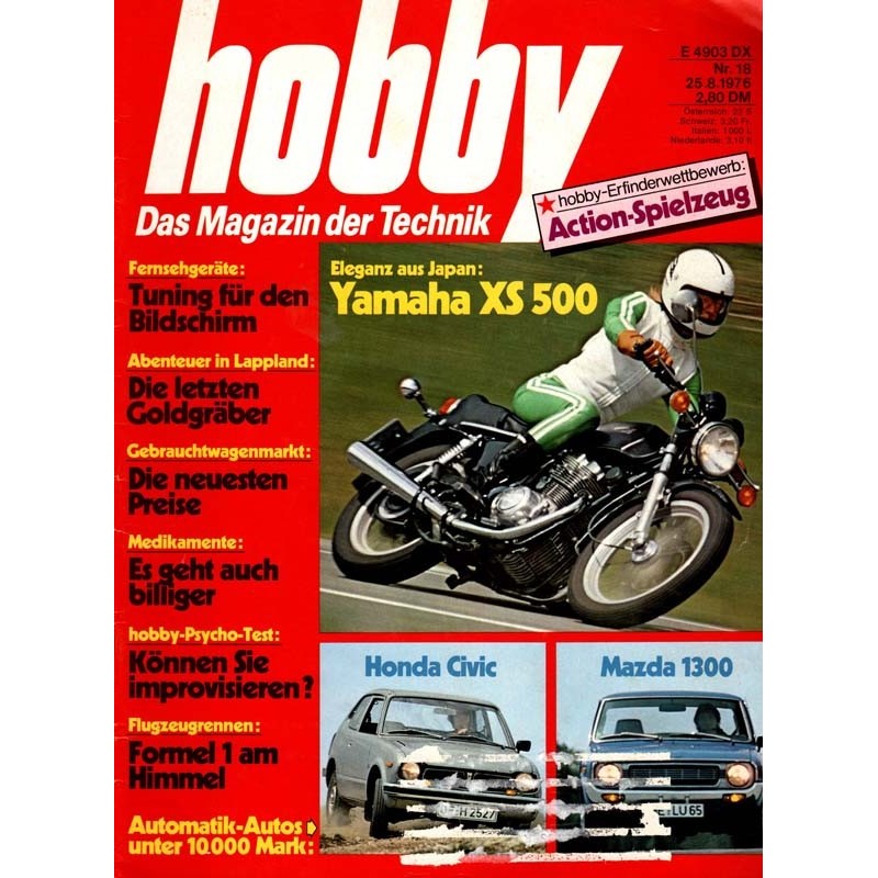 Original Inhaltsbeschreibung der Zeitschrift Hobby Nr.18 / 25 August 1976 - Yamaha XS 500: