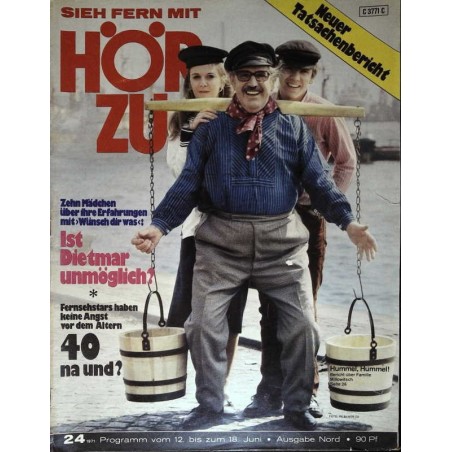 HÖR ZU-Reporter berichten Was uns an Dietmar nicht gefällt Elfie Pertramers Sohn erzählt Ist Rühmann ein Diktator? Die Frau um 40 — na und? Kurz und bündig Bummel durch die Studios Charlie Rivel ist krank und alt Film-Hits Günzler kriegt die Kurve Sport: Tanz auf vier Beinen Familie Hesselbach: Kuß vor der Haustür Millowitschs: Und alles ohne Muttern