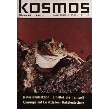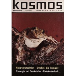 Zum Titelbild: Aufmerksam prüft dieser Seefrosch (Rana ndibunda) die Umgebung, bevor er aus dem Wasser steigt In Deutschland ist er der größte Froschlurch; er wird bis zu 15 cm lang. Als Kosmos-Titelbild soll er auf unsere „Tümpelaktion" in diesem Heft hinweisen. — Naturfotografen könnte es noch interessieren, warum auf diesem Foto das Wasser so eine extreme Farbe hat: Das Blitzlicht hellte die bräunlichen Schwebestoffe zu einem kräftigen Bordeaux-Rot auf. Bild: W. Bechtle