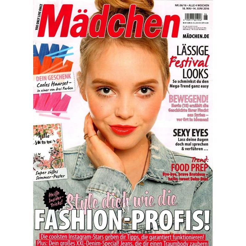 PLUS: Lässige Festival Looks: So schminkst du den Mega Trend ganz easy - Bewegend! Hevin 18 Jahre erzählt die Geschichte ihrer Flucht aus Syrien, vor Ort in Idomeni - Sexy Eyes: Lass dein Augen doch mal sprechen und verführen - Trend: Food Prep, Bye-Bye brave Brotdose, hello sweet Deko Box - Extra: Poster und Cooles Harrset (evtl. enthalten)