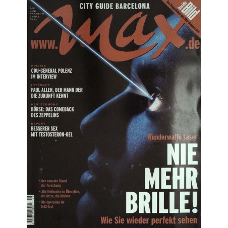 Stars ANGELINA JOLIE Für "Durchgeknallt" bekam sie einen Oscar und ist nun auf dem Weg zum Superstar WINONA RYDER Sie hat die schönsten Augen von Hollywood - in MAX schildert sie ihre Seelenlage RALF MOELLER Der deutsche Star aus „Gladiator" schreibt über seinen langen Weg zum Kino-Ruhm EN VOGUE Die Soul-Diven sind wieder da - und liefern sich mit ihrer Ex-Sängerin einen brisanten Wettstreit GUANO APES MAX traf die Kultband aus Göttingen, die sogar die US-Charts im Sturm erobert hat EAGLE-EYE CHERRY Mit seiner neuen Platte tritt er endgültig aus dem Schatten seiner Schwester Neneh GLORIA ESTEFAN Zu Besuch bei der engagierten Exil-Kubanerin und Pop-Queen