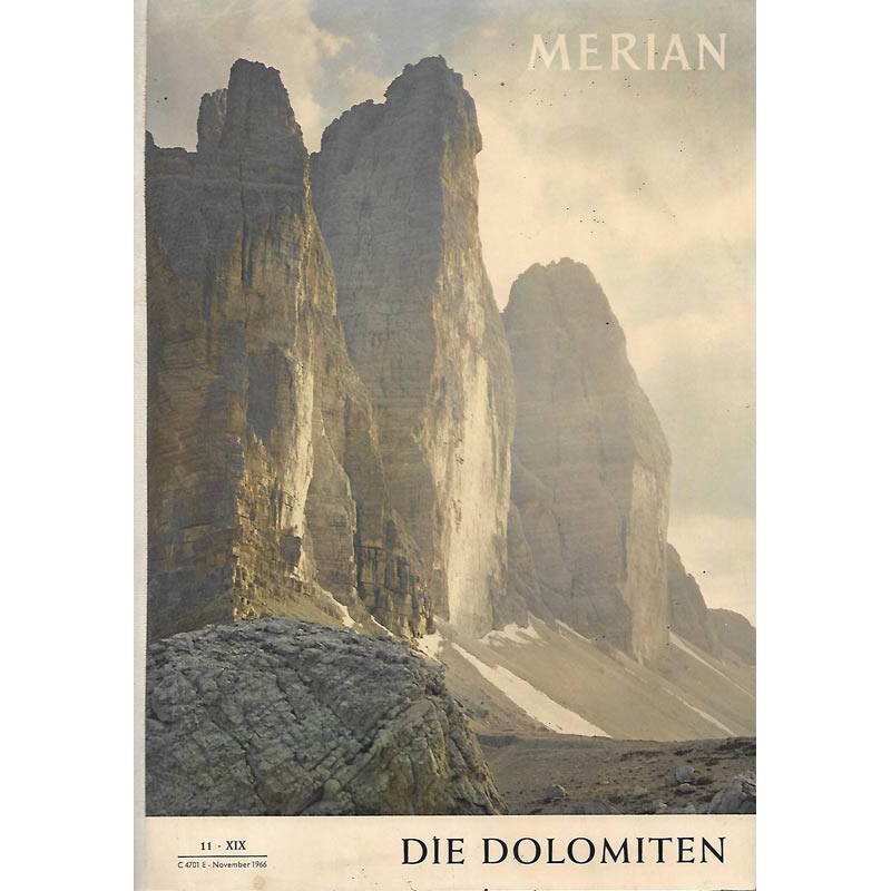 Grandiose Szenerie der Dolomiten: Aus saftigen, blühenden Matten ragen jäh bizarre Felskolosse — bleiches Gestein, das seinen schönen Namen dem Geologen Deodat Gratet de Dolomieu verdankt. In MERIAN's viertem Heft zum Thema Tirol rundet sich das Bild des heiligen Landes, seiner deutschen wie seiner welschen und rätischen Täler.