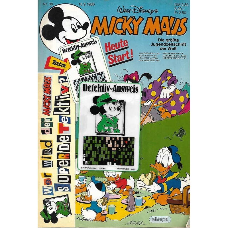 Walt Disney ehapa - Micky Maus Magazin Nr. 39 vom 18 September 1986