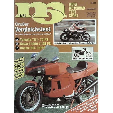 PLUS: Großer Vergleichstest: Wie viele Zylinder braucht eine 1000er? Yamaha TR 1 mit 70 PS, Kawa Z 1000 J mit 98 PS, Honda CBX mit 100 PS - Irre Festivals: 24 Stunden Rennen Bol d'Or - Exklusiv nur in mo: Thaler Ducati 900 SS