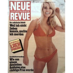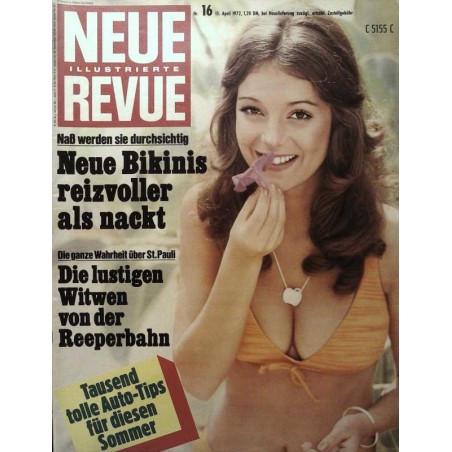 NEUE REVUE Reportagen und Informationen Naß werden sie durchsichtig: Neue Bikinis reizvoller als nackt Die Brücke mit der Todes-Garantie Alle wollen diese Hochzeit — aber ein Richter sagt nein Eingeklemmt — aber er fühlte keinen Schmerz Fernsehstar Helga Anders: Meine Ehe ist gescheitert — ich liebe einen anderen Zweieinhalb Jahre Gefängnis, weil er Geld für die Abtreibung gab Fräulein-Wunder: Der richtige Mann kann alles von mir haben Der unwürdige Streit um das Grab des Vaters Erfolg kann man lernen: So machen Sie mit Charme Karriere Krach gibt es in den besten Familien Tausend tolle Auto-Tips für diesen Sommer NEUE REVUE-Urlaubstip: Ein Mädchen — und vierzehn wilde Männer