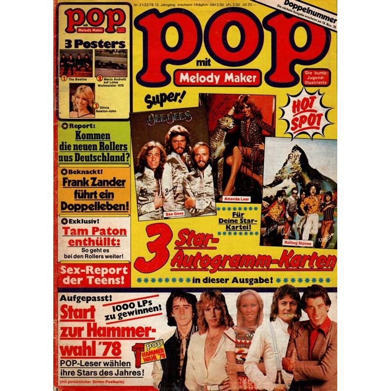 PLUS: Report: Kommen die neuen Rollers aus Deutschland? - Beknackt: Frank Zander führt ein Doppelleben - Exklusiv: Tam Paton enthüllt, so geht es bei den Rollers weiter - Sex Report der Teens - 3 Star Autogrammkarten (enthalten) - Poster: The Beatles, Mario Andretti, Olivia Newton John (zum Teil enthalten)