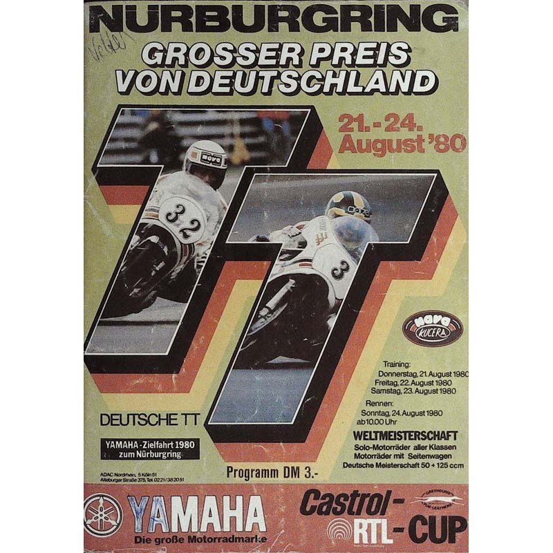 Titelbild: Nürburgring. Grosser Preis von Deutschland. Weltmeisterschaft: Solo Motorräder aller Klassen, Motorräder mit Seitenwagen, Deutsche Meisterschaft 50 + 125 ccm - Deutsche TT - Yamaha Zielfahrt 1980 zum Nürburgring
